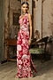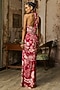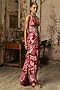 Scarlet Red Crepe Coral Veil Printed Slit Maxi Dress