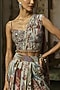 Stale Grey Crepe Featherfall Printed Dhoti Skirt Set