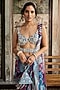 Diyarajvvir presents a teal blue tiered gharara saree in crepe and georgette base with boota print. It is paired with a printed blouse, a belt and a potli bag. Style it with crystal danglers, a sleek ponytail, and metallic heels, perfect for cocktail parties, festive soirees, or evening celebrations.
