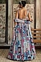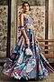 Diyarajvvir presents a teal blue lehenga in crepe and georgette base with jaal print. It is paired with a printed blouse having a square-neckline, a cancan, a polti bag and a dupatta. Style it with crystal danglers, a sleek ponytail, and metallic heels, perfect for cocktail parties, sangeet, or wedding ceremonies.