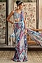 Teal Blue Crepe & Georgette Printed Tiered Skirt Saree Set