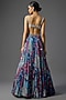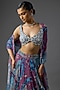 Featuring a teal lehenga in crepe and georgette base with butta print. It is paired with a printed blouse and a dupatta. Accentuate it with zircon jewellery and heels for a wedding or sangeet ceremony.