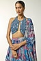 Featuring a teal lehenga in crepe and georgette base with print. It is paired with a halter blouse and a dupatta. Accentuate it with zircon jewellery and heels for a wedding or sangeet ceremony.