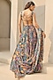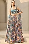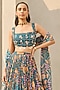 Featuring a teal lehenga in georgette base with floral print. It is paired with a printed blouse and a dupatta. Accentuate it with polki jewellery and strappy heels for festive occasions, mehendi ceremony or daytime weddings.