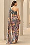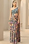 Featuring a teal pre-draped saree in georgette base with abstract floral print. Accentuate it with polki jewellery and strappy heels for festive occasions, mehendi ceremony or daytime weddings.