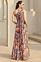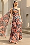 Featuring a teal and rust jumpsuit in georgette base with floral print. Accentuate it with minimal jewellery and stilettos for festive gatherings or garden parties.