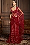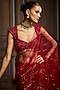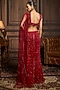 Featuring a vermillion red pre-draped skirt saree in tulle base with embroidery. It is paired with an embroidered blouse. Accentuate it with zircon jewellery, clutch bag and embellished heels for a stylish ensemble, ideal for engagement, sangeet nights, or wedding ceremony.