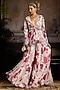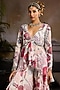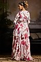 Featuring a white and pink peplum kurta in organza base with leaf print. It is paired with printed sharara pants. Accentuate with statement jewellery and heels for a festive ceremony.