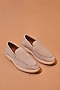 Featuring a pair of beige loafers in leather base with suede upper and velvet texture. It has a sheep leather lining, a cushioned footbed, durable rubber sole and 1-inch heel. Pair with whites, creams, or earthy tones for a fresh, elevated look. It also works effortlessly with denims and summer tailoring for a relaxed yet polished style.