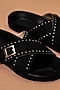 Featuring a pair of black flats in leather base with rivet details and cross strap design. It has a sheep leather lining and cork footbed. Pair with denims, tailored trousers, or relaxed summer wear for a sharp, masculine look. Ideal for everyday styling with a bold, refined edge