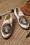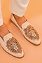 Featuring a pair of white loafers in leather base with zardosi embroidery. It has a leather lining, memory cushion insole, anti-skid sole and a 3mm heel. Style it with a sherwani set or kurta set for an ethnic look.