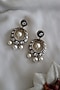 Black Rhodium Plated Kundan Polki & Freshwater Pearl Chandbaali Earrings