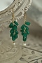 Gold Finish Green Natural Stone & Pearl Dangler Earrings