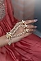 Featuring a gold finish haathphool studded with kundan polki and pearls, set in silver alloy. Perfect for festive occasions or wedding ceremonies.