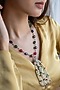 Featuring a gold finish necklace studded with pearls, onyx and multi-colored natural stones, set in silver alloy. Perfect wear for a wedding or festive occasion.