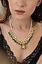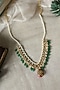 Featuring a 22kt gold plated necklace studded with kundan, pearls red and green stones, set in mixed metal. It has a lobster closure. Perfect wear for festive occasions or wedding ceremonies.