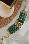 Featuring a 22kt gold plated adjustable bracelet studded with kundan and jade stones, set in mixed metal. It has a lobster closure. Perfect wear for festive occasions or wedding ceremonies.