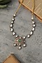Featuring a 22kt gold plated necklace studded with kundan polki, pearls, mint fluorite stones and cubic zirconia, set in mixed metal. Perfect choice for festive celebrations, wedding or sangeet ceremonies.