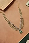 Featuring a 22kt gold plated layered necklace studded with kundan polki, cubic zirconia and mint green fluorite stones, set in mixed metal. Perfect choice for festive celebrations, wedding or sangeet ceremonies.