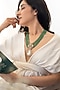 Featuring a 22kt gold plated necklace studded with kundan polki, cubic zirconia and mint onyx stones, set in mixed metal. Perfect choice for festive celebrations, wedding or sangeet ceremonies.