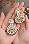 Featuring a pair of 22kt gold plated dangler earrings studded with kundan polki, cubic zirconia and multi-colored stones, set in mixed metal. Perfect choice for festive celebrations, wedding or sangeet ceremonies.