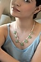 Featuring a 22kt gold plated necklace studded with mint green fluorite stones and shell pearls, set in silver alloy. Perfect wear for festive occasions or wedding ceremonies.