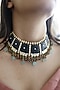 Featuring a 22kt gold plated necklace studded with multi-colored natural stones, kundan, onyx and zirconia, set in mixed metal.