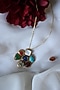 Featuring a 22kt gold plated pendant necklace studded with multi-colored stones, set in mixed metal. Perfect choice for weddings, parties, and other Indian festivities.