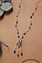Featuring a 22kt gold plated necklace studded with pink tourmaline stones, blue lapis lazuli, mint green stones and pearls, set in mixed metal. Perfect choice for festive celebrations, wedding or sangeet ceremonies.