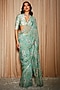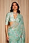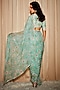 Aqua Green Organza Floral Printed & Embroidered Saree Set