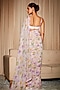 Featuring a baby pink pre-draped saree in organza base with floral print and applique embroidery, including a scalloped sequins border and an attached satin underskirt. It is paired with an organic silk unstitched blouse piece. Accentuate it with statement jewellery and heels for a festive occasion or pooja ceremony.