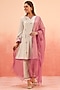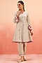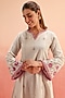 Featuring a beige A-line short kurta in cotton flax stripe base with aari and adda embroidery. It is paired with cotton slub straight pants and a kota embroidered dupatta. Accentuate it with silver jewellery and embellished heels for a festive, pooja or sangeet ceremony.