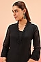 Featuring a black short straight kurta in cotton silk base. It is paired with palazzo pants and a cotton silk dobby dupatta having lace detailing. Accentuate it with silver jewellery and embellished heels for a festive, pooja or sangeet ceremony.