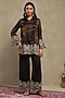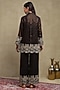 Featuring a black shirt in tissue chanderi base with embroidery. It is paired with pants and a cotton slip. Accentuate it with dangler earrings and flats for a festive occasion, intimate pooja ceremony or family gathering.