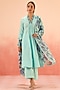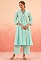 Blue Cotton Slub Jacquard Aari Embroidered A-Line Kurta Set
