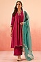 Featuring a crimson red A-line kurta in cotton silk base with dori, aari and gota work. It is paired with modal viscose palazzo pants and a dupatta having lace detailing. Accentuate it with silver jewellery and embellished heels for a festive, pooja or sangeet ceremony.