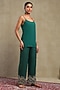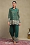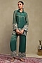 Featuring an emerald green shirt in tissue chanderi base with embroidery. It is paired with pants and a cotton slip. Accentuate it with dangler earrings and flats for a festive occasion, intimate pooja ceremony or family gathering.