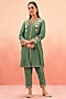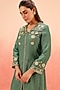 Green Cotton Silk Aari Embroidered A-Line Kurta Set