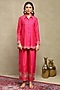 Featuring a hot pink top in silk chanderi jacquard base with embroidery. It is paired with pants. Accentuate it with dangler earrings and flats for a festive occasion, intimate pooja ceremony or family gathering.