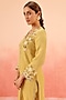 Featuring a mustard A-line short kurta in cotton silk base with adda, gota and aari embroidery. It is paired with straight-cut pants and a dupatta. Accentuate it with statement jewellery and heels for a festive occasion, wedding or engagement ceremony.