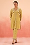 Mustard Cotton Silk Aari Embroidered A-Line Short Kurta Set