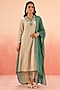Featuring a mustard striped straight kurta in cotton slub base with aari embroidery. It is paired with pants and a bemberg jacquard dupatta having lace border detail. Accentuate it with silver jewellery and embellished heels for a festive, pooja or sangeet ceremony.