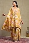 Mustard Luxe Chanderi Printed & Embroidered Cape Set