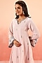 Featuring a pink A-line short kurta in cotton flax stripe base with aari and adda embroidery. It is paired with cotton slub straight pants and a kota embroidered dupatta. Accentuate it with silver jewellery and embellished heels for a festive, pooja or sangeet ceremony.