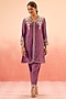 Purple Cotton Silk Aari Embroidered A-Line Short Kurta Set
