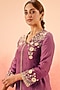 Featuring a purple A-line short kurta in cotton silk base with adda, gota and aari embroidery. It is paired with straight-cut pants and a dupatta. Accentuate it with statement jewellery and heels for a festive occasion, wedding or engagement ceremony.