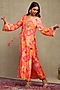 Featuring a red and orange kaftan in silk modal base with print and hand embroidery. It is paired with pants. Accentuate it with polki earrings and block heels for a festive occasion or sangeet ceremony.