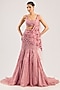 Baby Pink Net Hand Embroidered Draped Skirt Saree Set