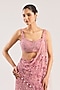Featuring a baby pink skirt saree in net base with sequins and mirror hand embroidery. It is paired with a blouse and a draped dupatta. Accentuate it with statement crystal jewellery, a sleek clutch and metallic stilettos for a stylish ensemble, ideal for cocktail evenings, glamorous receptions or red-carpet style celebrations.
