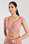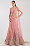 Featuring a baby pink lehenga in net base with hand embroidery. It is paired with a blouse and a dupatta. Accentuate it with dangler earrings and heels for a cocktail, wedding or sangeet ceremony.